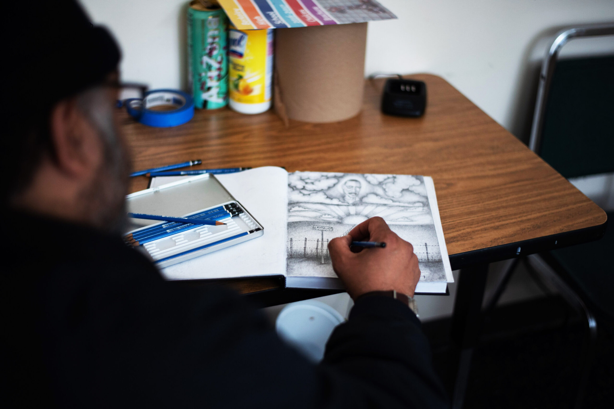 [caption id="attachment_5658" align="alignleft" width="300"] Photo: Jerome Paulos[/caption]After graduating from high school, Alves continued to draw because it allows him to express himself. He especially likes to draw portraits. “I love to see how people light up when they see themselves on a piece of paper,” he said. He enjoys evoking strong emotions in the viewers of his art, for example, by detailing the lines in an older person’s face to portray wisdom. Alves focuses on charcoal and black and white drawings since he believes stark contrasts can offer deep and meaningful images.
